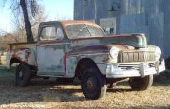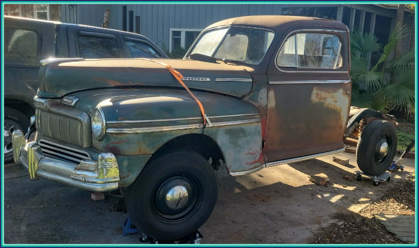 This was our original plan from the start. We had planned on purchasing a "donor" 47-48 Mercury Sedan, one such as this one pictured, with gobs of well aged patine oozing out of every crevice and using that car as the "new" body for the Marmon-Herrington AWD chassis. Unfortunately that might not be as easy as first thought. The location where we'd originally planned on performing the body swap was not made available. So the search for a work location continues on, as well as the search for a donor body.