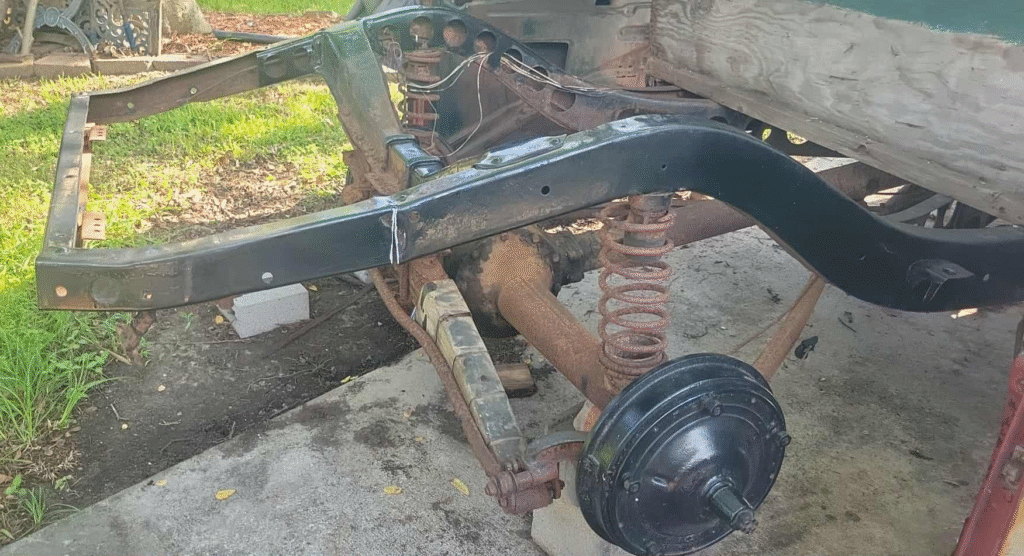 Every “project” of any sort has to start somewhere. And in the case of this ’48 Mercury Marmon-Herrington Sedan pictured here, that starting point is indeed focused on the chassis as that is the heart of the beast. More specifically, the rear section of the frame, behind the crossmember that holds the rear suspension. Apparently at some point in its life it suffered a small bit of damage to the rear of the frame rail (where the bumper brackets mount) and while a repair has been initiated on the passenger side(see photo), for some unknown reason it was never completed.